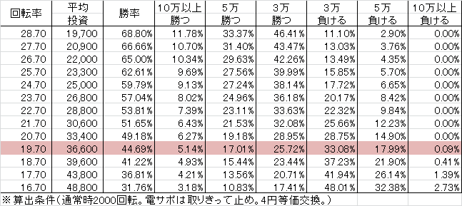 | 交換率 | 回転数/千円 | 推定持ち比 |
